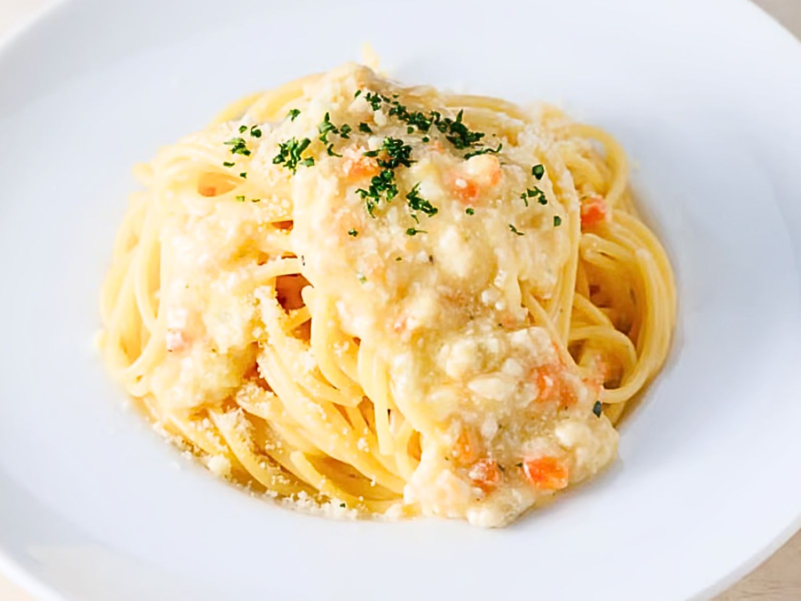 じっくり炒めた香味野菜の旨みと生クリームのコクが調和する、軽やかな新感覚のソース。一食でたんぱく質22.8gを摂取できるヘルシーさも魅力です。