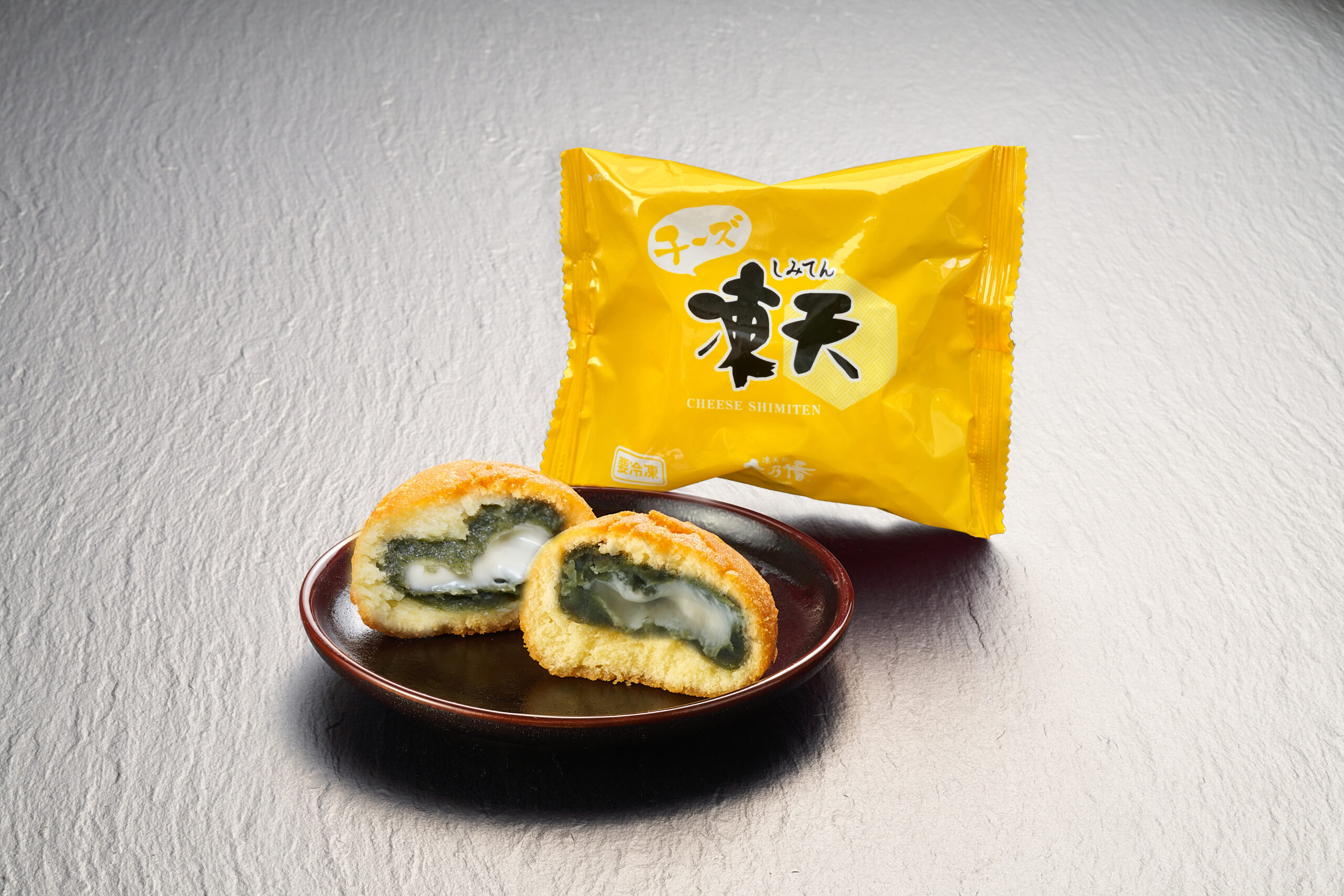 ドーナツ生地で「凍餅」を包みこんで揚げた福島発祥のご当地おやつ。凍餅の中にとろけたチーズがたっぷり入ったチーズ凍天です。甘みと塩味が織りなす、止まらない美味しさ。